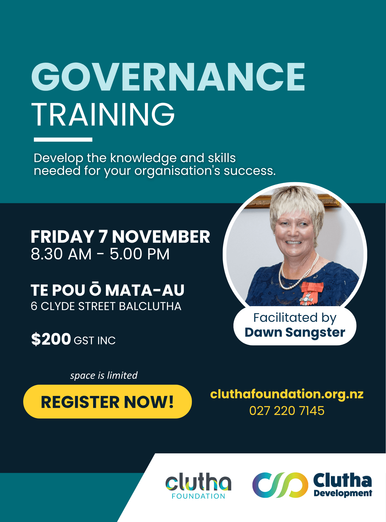 Join us for a one day course on governance training. Led by Dawn Sangster, this workshop is designed to equip you with the knowledge and skills necessary to contribute to your organisation's success.